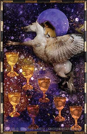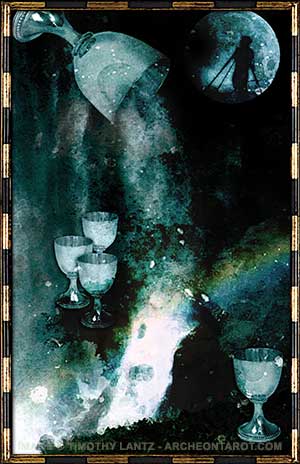Card art/illustrations for the 14 Cups cards in the Archeon Tarot by Timothy Lantz.